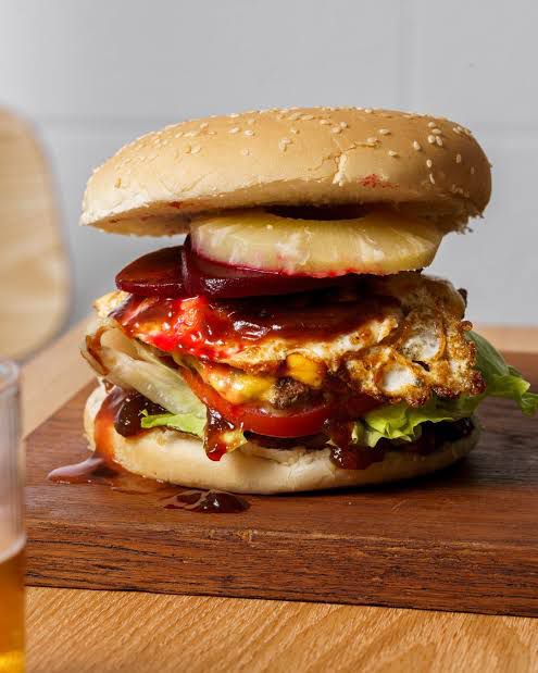 grilled vegetable pattie, lettuce, tomato, beetroot relish, carrot & tomato relish